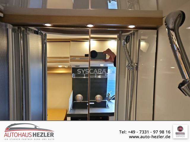 • Weiteres: Festbett, Motor / Chassis: Fiat Ducato 2, Leistung: 103 kW / 140 PS, Getriebe: Automatik, zul. Gesamtgewicht: 3500 kg, Sitzgruppe: Seitensitzgruppe, Polster: Paris, Holzdekor: Cherry Style, SONDERAUSSTATTUNG: Chassis-Paket (Einparkhilfe mit Sensoren im Heck, Chassis-Plus-Paket (Lenkrad und Schaltknauf in Textilleder, Aufbau-Paket (Dachinnenverkleidung mit Mikrofaser-Klimabelag, Fahrassistenz- und Infotainment Paket (Aktiver Bremsassistent mit Fußgänger und Radfahrererkennung, Aufstelldach family-for-4-Paket (Hybrid-Aufstelldach aus hochstabilem Sandwich, Steckdosenpaket: 3x USB-Steckdose / 2x 230 V Steckdose (2x USB-Steckdose im Schlafbereich auf Fahrer- und Beifahrerseite,