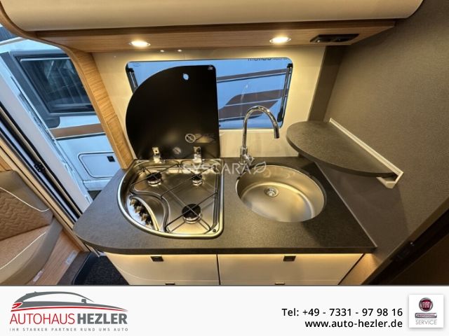 • Chassis-Komfort-Paket Fiat lightweight (Malibu Radzierblenden, Tempomat, Kühlergrill in Hochglanz schwarz, Ladebooster, Fahrersitz mit Neigungs- und Höhenverstellung, Beifahrerseitz mit Neigungsverstellung, Radiovorbereitung mit Dachantenne mit DAB+, Lautsprecher (4x), DVB-T2 Empfang, Pioneer Radio/Moniceiver 6,8 inkl. DAB+, Malibu Rückleuchten mit LED-Leuchtband, Große Garagentür auf Fahrerseite, XL-Aufbautür premium two 2.0 (Breite 63 cm) mit Doppelverriegelung, Fenster- und Insektenschutzrollo, Hohlwaben-Isolierfrontplissee mit vertikaler Bedienung und Faltplissee Seitenscheiben, Dachluke Midi-Heki über L-Wohnsitzgruppe, Indirekte Ambientebeleuchtung Wohnraum und Küche in LED-Technik, Digitales Bedienpanel Truma CP Plus, Lithium-Ionen-Batterie 90 Ah inkl. Batteriecomputer anstelle 80 Ah Gel-Batterie, SOG-Toilettenentlüftung, USB-Steckdose im Dachstauschrank über Heckbett)